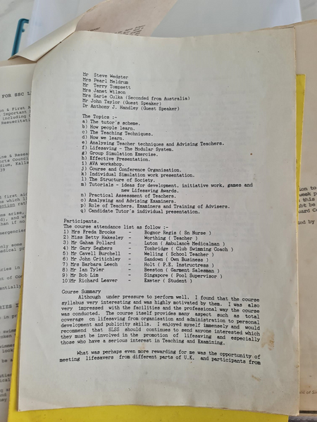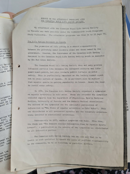 Read Bob's report on his attachment to the Canadian Royal Life Saving Society Programme