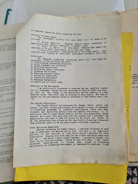 Today, Bob stands as a highly respected figure within the Lifesaving Community. As the President of the Singapore Life Saving Society, Bob not only traveled to distant lands like Canada, Scotland, Germany, and Australia to deliver compelling presentations and speeches, but also led the organization with remarkable dedication. His role as Chief Examiner and author of numerous enduring manuals continues to influence and shape the field to this day.