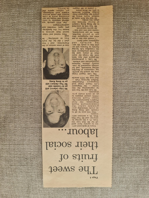 When Bob was 27 years old, his dedicated service to society paid off as he was selected to participate in a study fellowship in Canada under the Commonwealth Youth Programme, the first People's Association's National Youth Service award winners to go on such a programme.